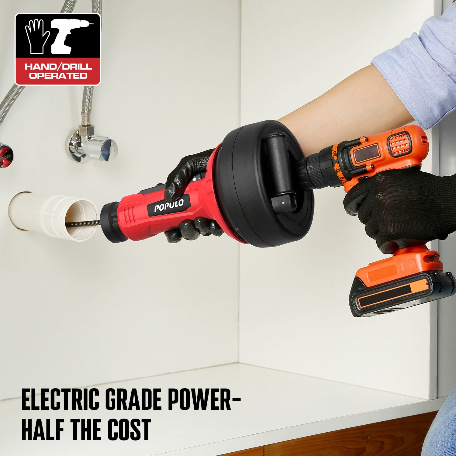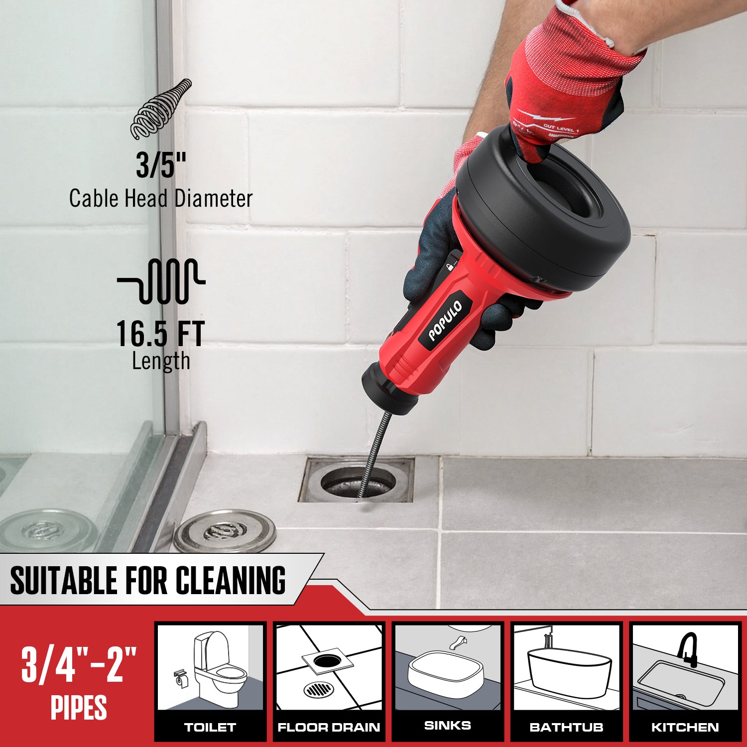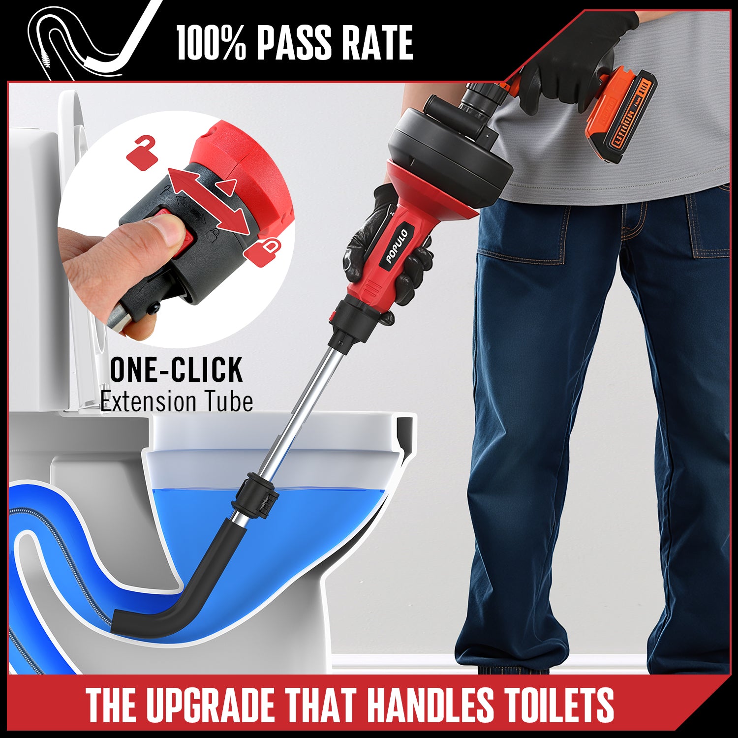 POPULO 16.5FT Auto Feed Drain Snake, Upgraded Toliet Auger, Plumbing Hair Drain Clog Remover with Extension Tube for Toliet, Shower, Bathtub, Kitchen, Sink