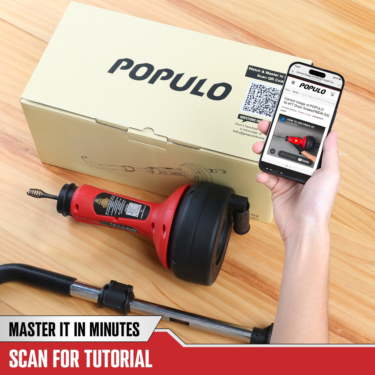 UPGRADED TOLIET AUGER - This drain snake plumbing tool is POPULO's second-generation Drain Auger, which comes with a dedicated toliet tube. It's the latest technology for all scenarios.